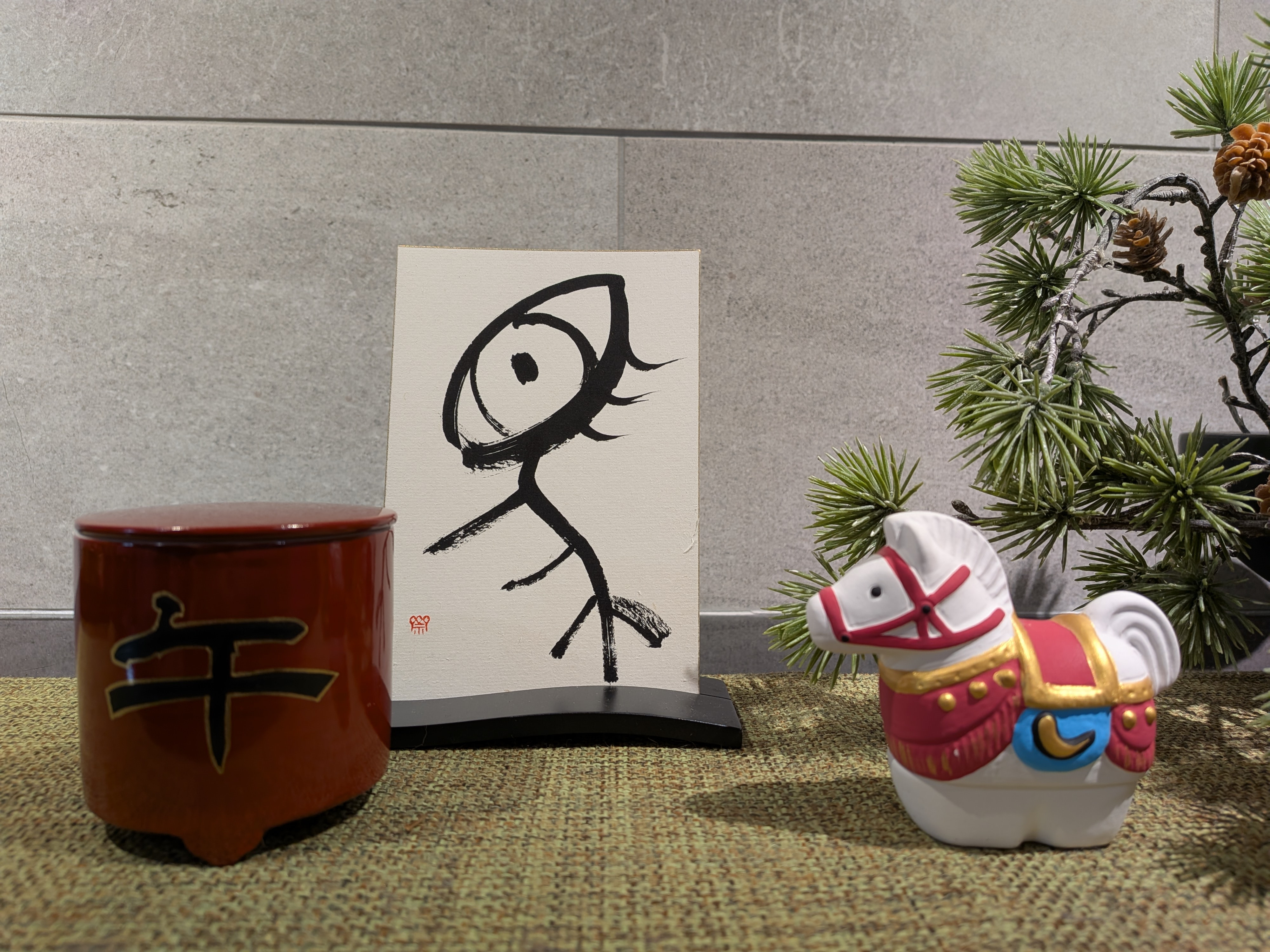 書、というと、静けさや深さを連想しますが、青楓先生の書の世界は、それに加えて生き生きとした楽しさにあふれています。美術館に展示された作品も立派ですが、青楓先生の世界はご自身のリビングギャラリーがそうであるように、生活や暮らしの中にあって初めてよろこびの光を放つものであるかと思います。 楽しさとはよろこびであり、書とはよろこびの発露です。